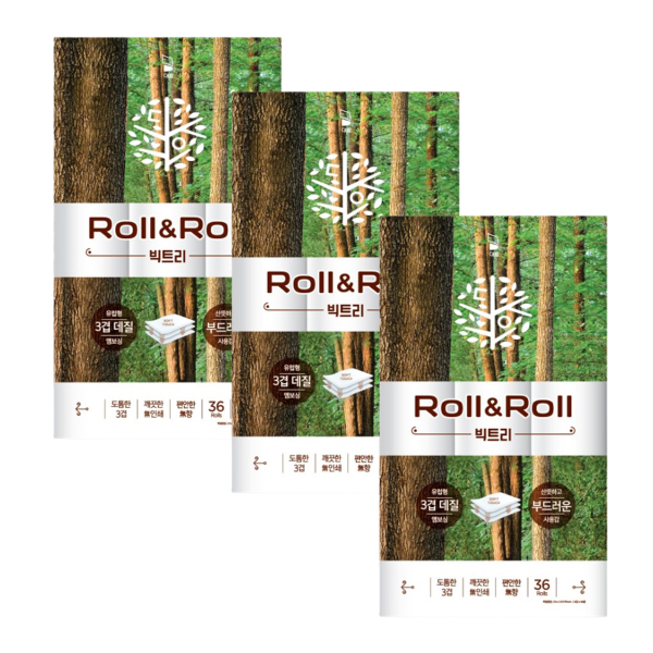 대왕 롤앤롤 빅트리 3겹 고급롤화장지, 25m, 36개입, 3팩