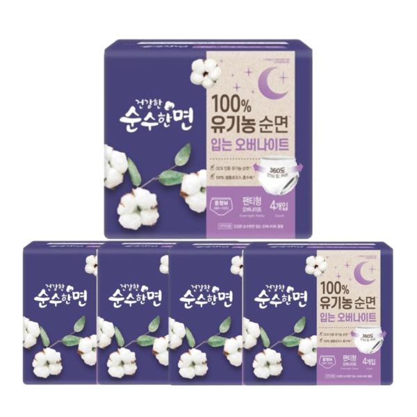건강한 순수한면 입는 오버나이트 중형(4P) x 5팩