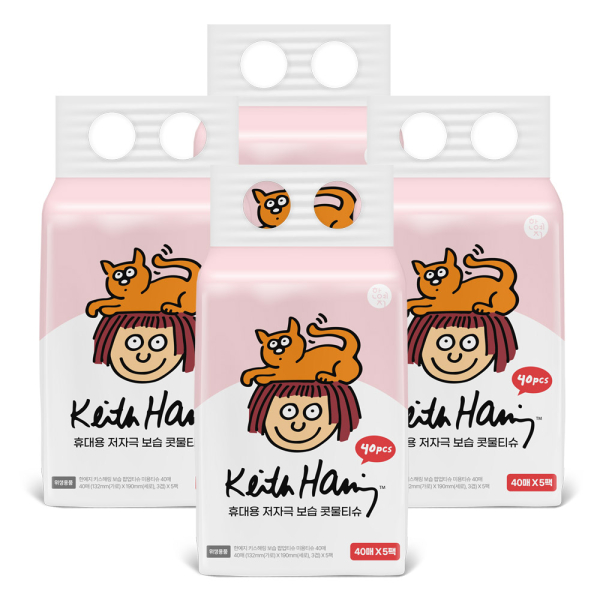 한예지 키스해링 휴대용 저자극 보습 비염 콧물 미용티슈 40매 5개 (4팩)
