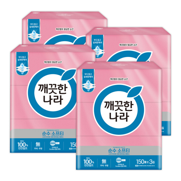 [깨끗한나라] 순수 소프티 미용티슈 150매 3입 4팩