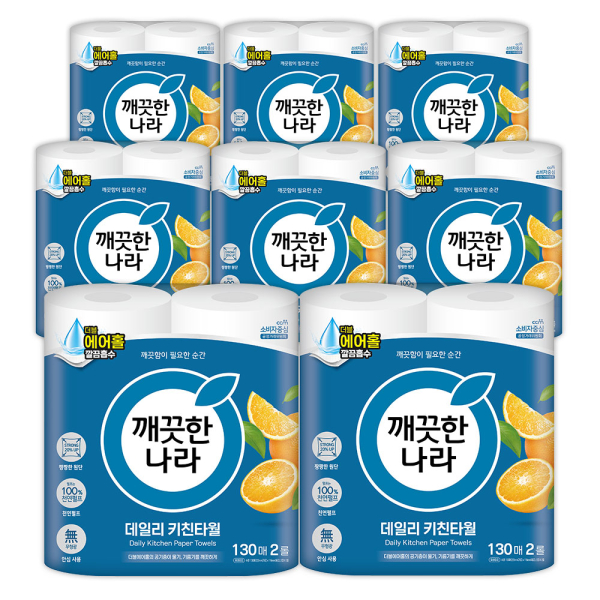 [깨끗한나라] 데일리 키친타올 130매 2롤 8팩