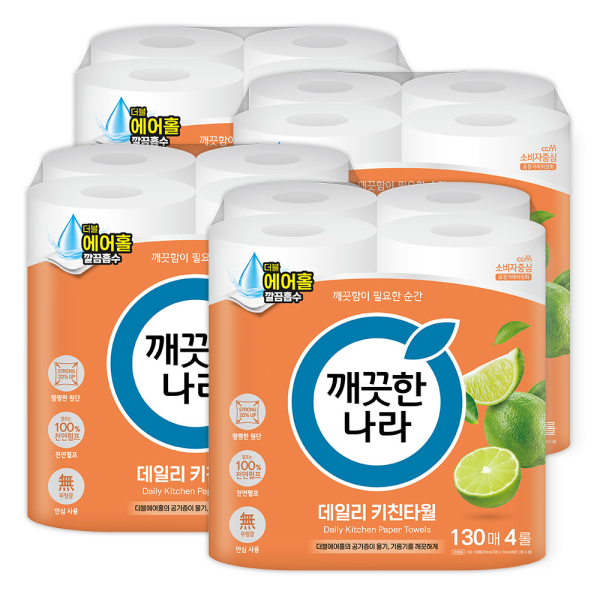 [깨끗한나라] 데일리 키친타올 130매 4롤 4팩