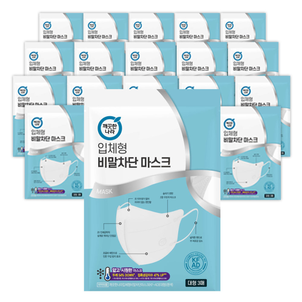 [깨끗한나라] 입체형 비말차단 마스크 KF-AD 흰색 3매 20개