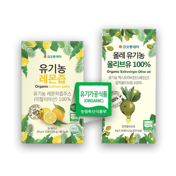 [코오롱제약] 유기농 올리브유 엑스트라버진 스틱 8g x 14포 & 이탈리아 유기농 레몬즙(100%) 20g x 15포