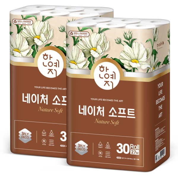 한예지 네이처소프트 3겹 27m 30롤 화장지 2팩