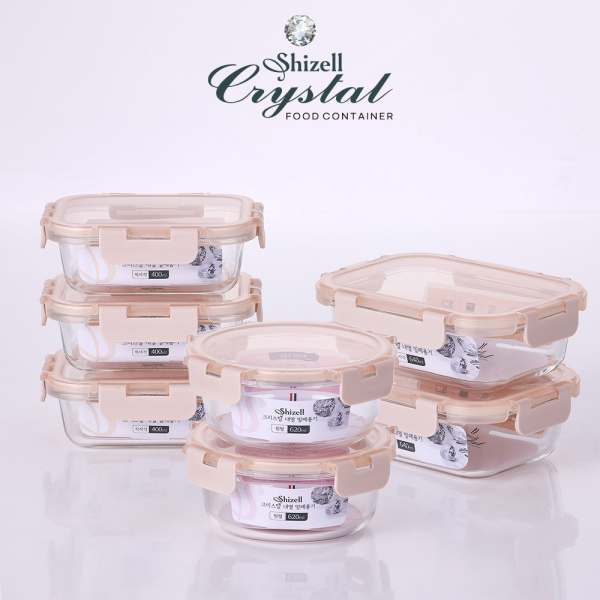 [쉬젤] 크리스탈 내열 밀폐용기 혼합 7종세트B (원형 620ml×2개+직사각 640ml×2개+400ml×3개)
