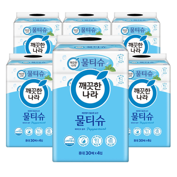 깨끗한나라 여행용 물티슈 30매 4입 6팩