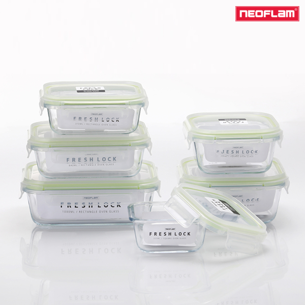 [네오플램] 프레쉬락 내열유리 밀폐용기 6종세트 (정사각 320ml, 정사각 520ml, 정사각800ml, 직사각 320ml, 직사각 640ml, 직사각 1L) [품절]