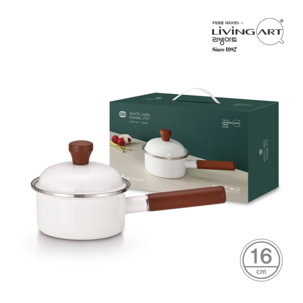 [리빙아트] 옥슨 법랑냄비 화이트라벨 편수 16cm
