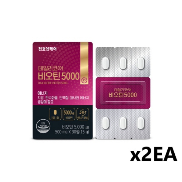 [천호엔케어] 데일리코어 비오틴5000 500mg * 30정 * 2ea(2개월분)