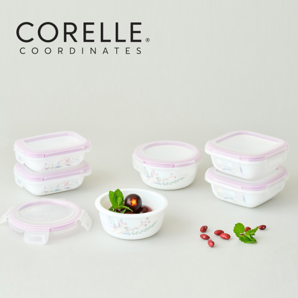 [코렐] 코디네이츠 밀크글라스 밀폐용기 산호세 혼합 6종