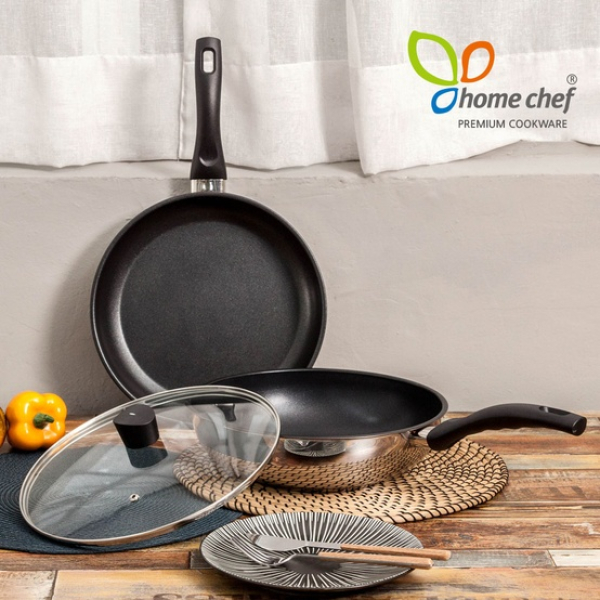 [홈셰프]IH인덕션 3중 스텐레스 후라이팬3종세트(28cm+28cm웍팬+유리뚜겅28cm)