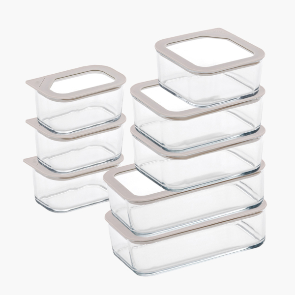 [네오플램] 피카원 글라스 모듈형 유리 밀폐용기 8종세트 (직사각530ml*3+정사각930ml+직사각1,300ml*2+1,600ml*2) (화이트)