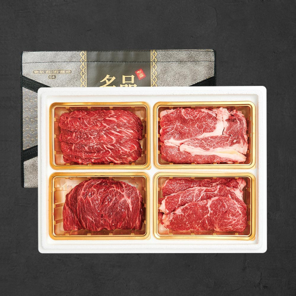 1등급 숙성 한우암소 꽃등심 구이혼합 선물세트 7호 1.2kg (꽃,채,불,국)