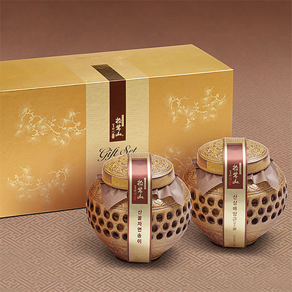 [참자연] 산삼배양근 담은꿀 도자기 선물세트 (400g 2병)