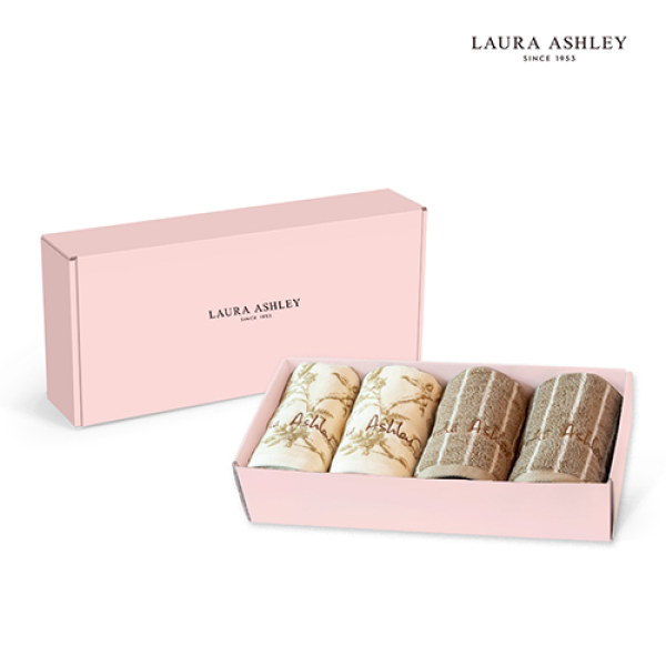 [로라애슐리]엘더우드 로얄헤리티지(브라운)타월 2매&스트라이프(브라운)타월 2매60수 180g 4매 혼합세트