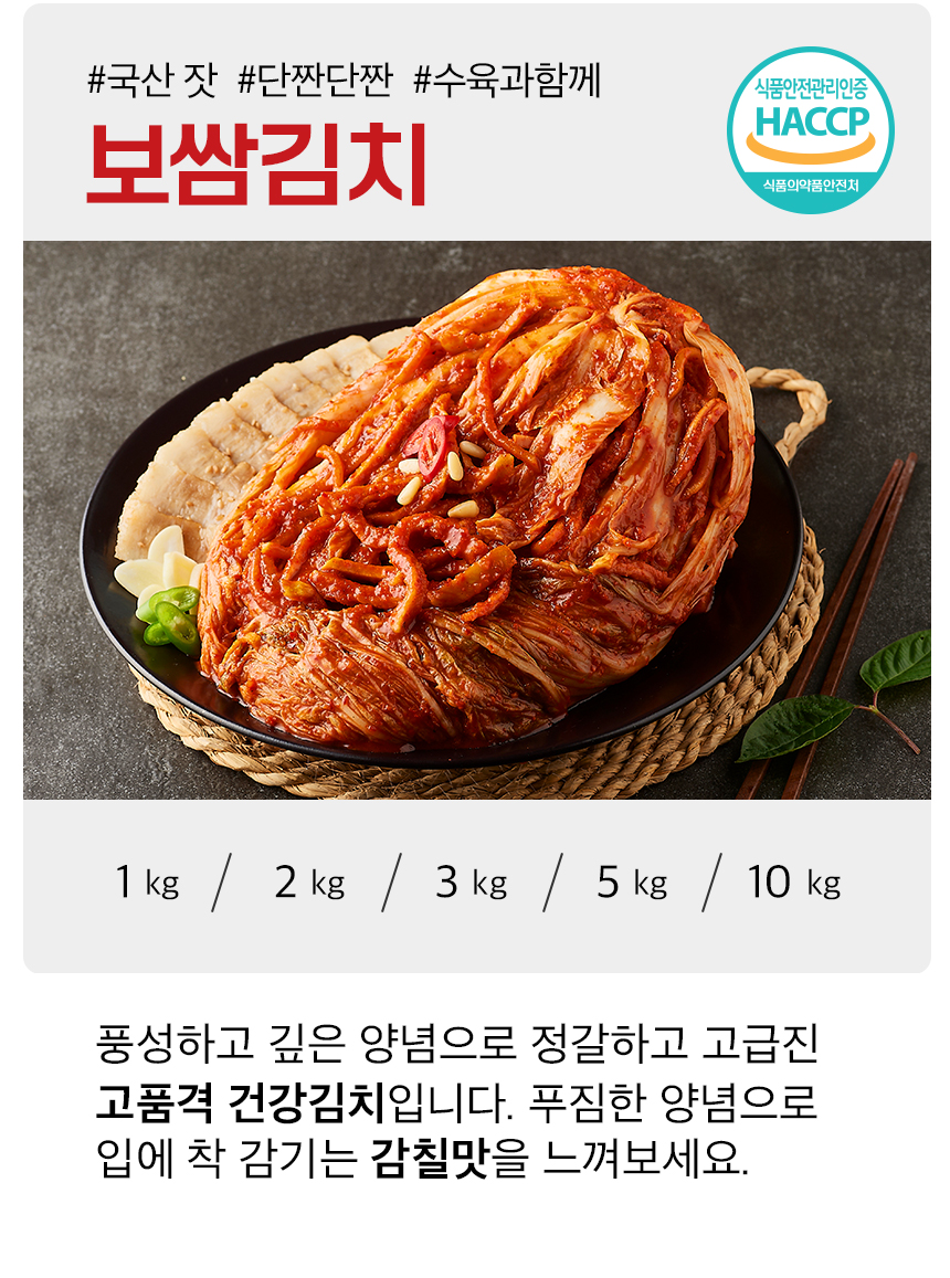 | 상품구성 | 보쌈김치 1kg/2kg/3kg/5kg/10kg |