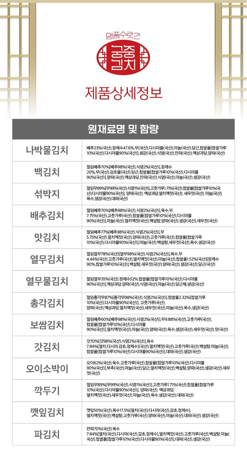 | 항목 및 품명 | 명품수랏간 궁중김치 보쌈김치 |