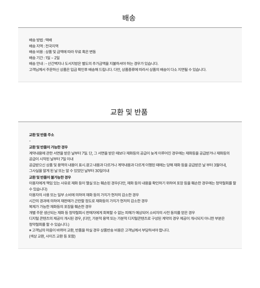 배송 안내 : - 산간벽지나 도서지방은 별도의 추가금액을 지불하셔야 하는 경우가 있습니다.