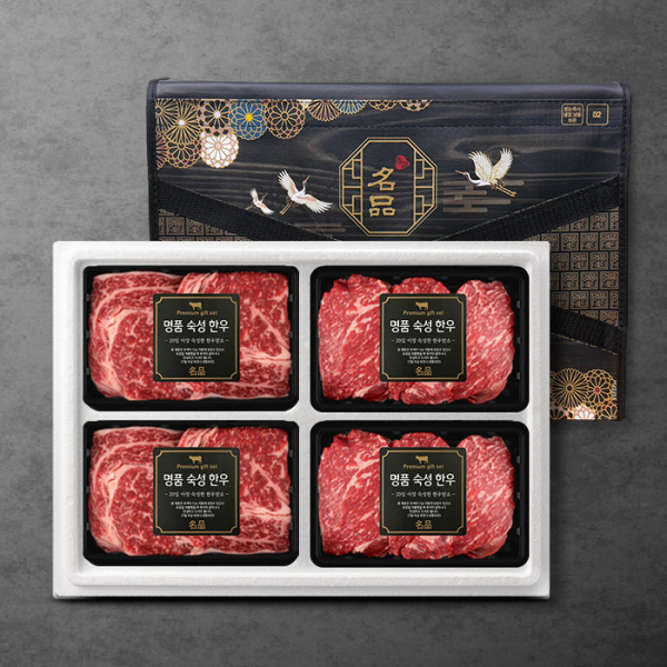 1++(8)등급 숙성 한우세트 1호(800g/꽃등심+안심+채끝+갈비살)냉장